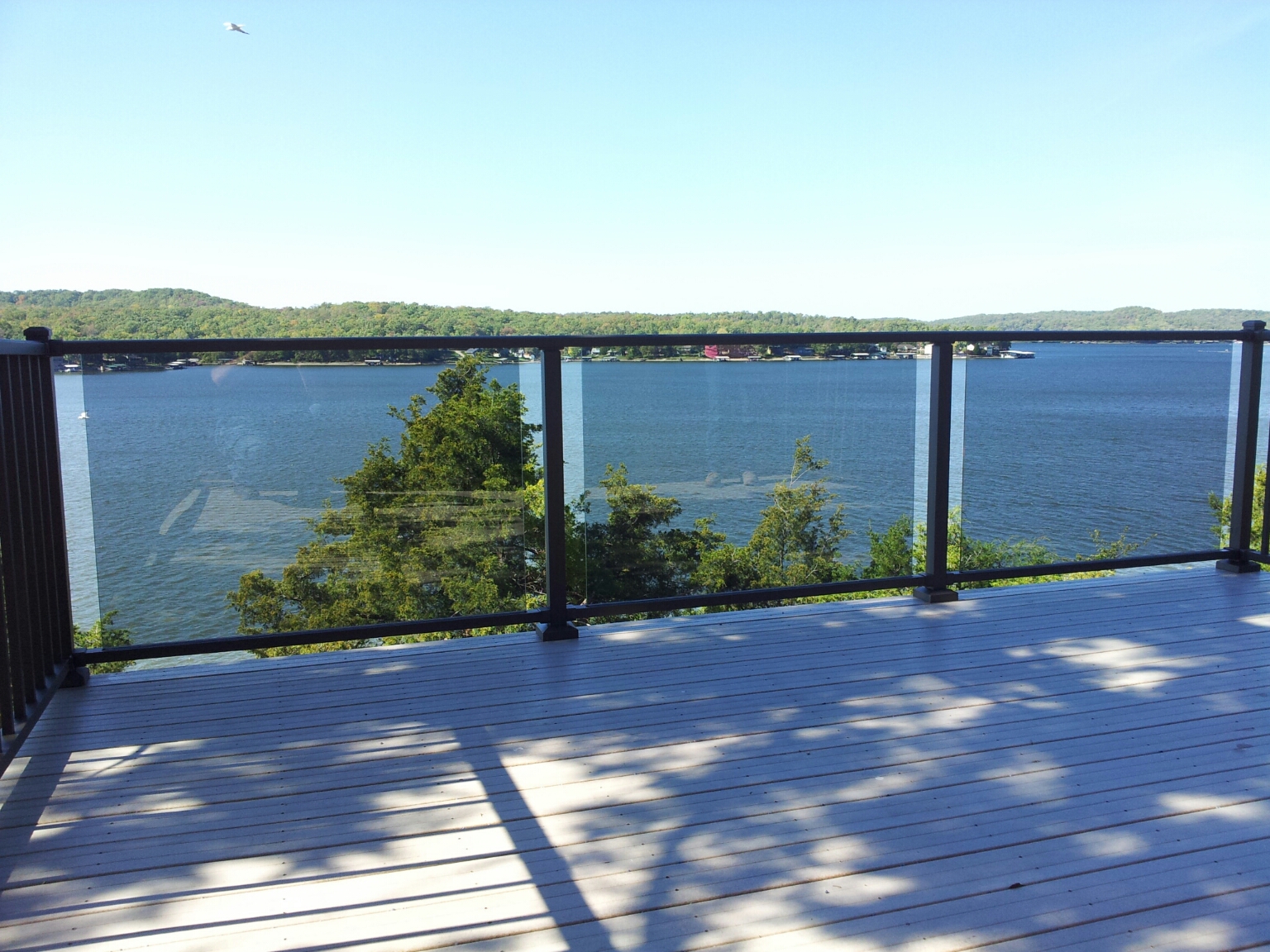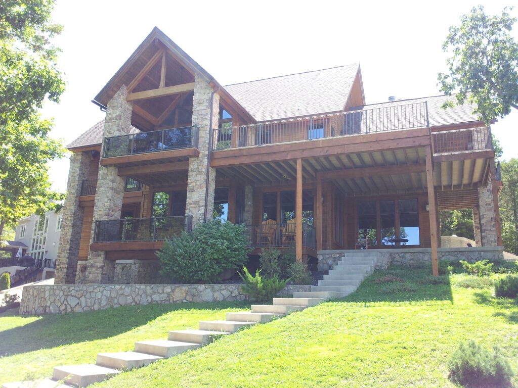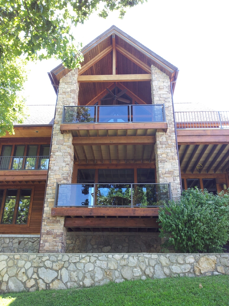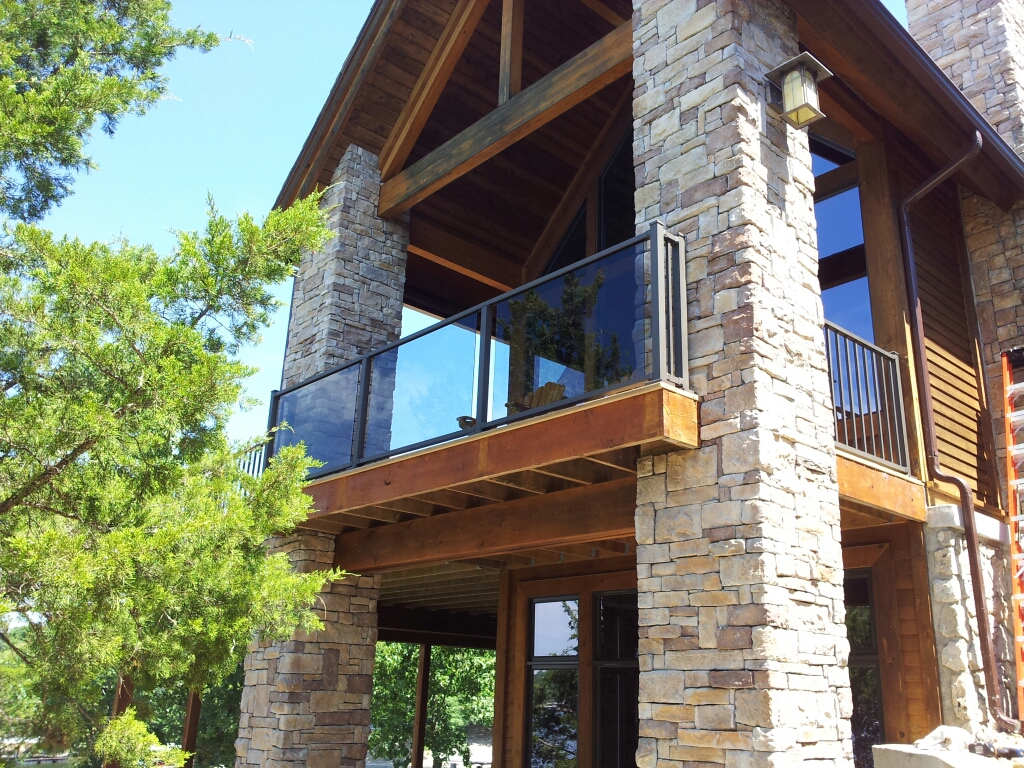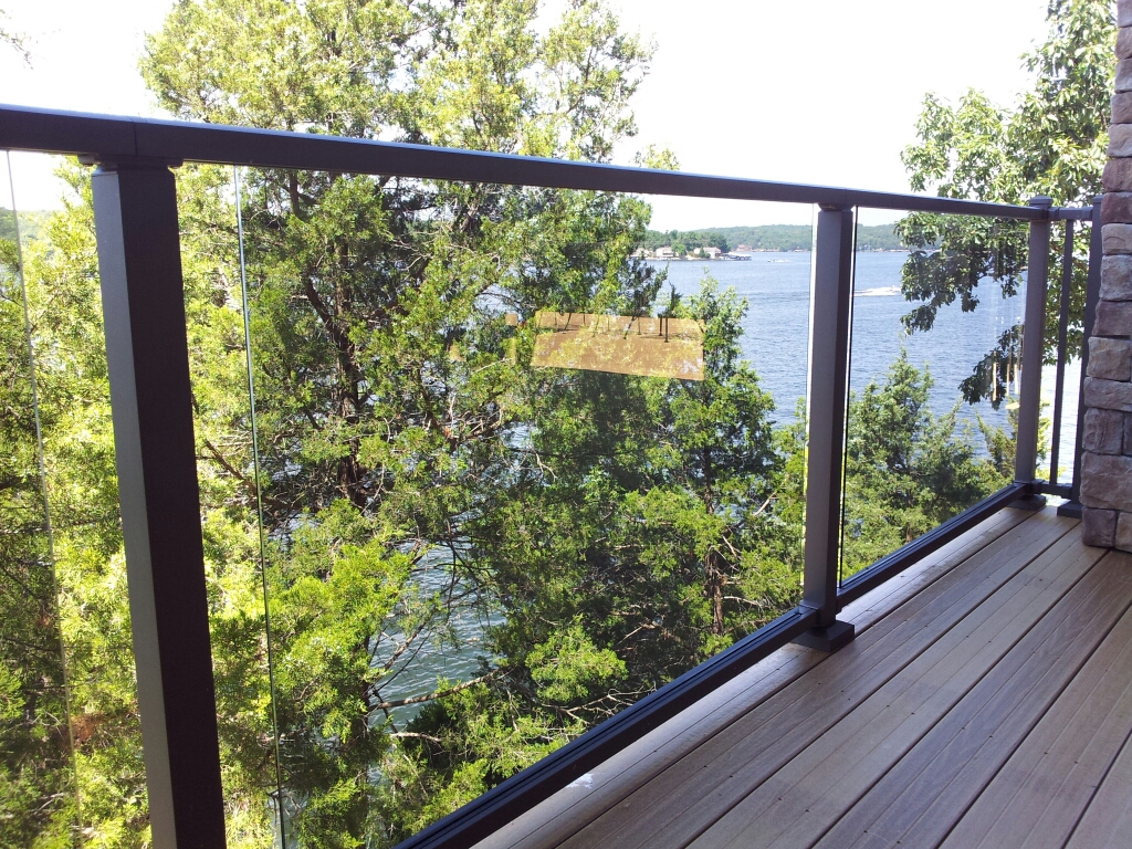 36" tall style c-70 veranda handrail. bronze fine texture. Gray tinted glass.